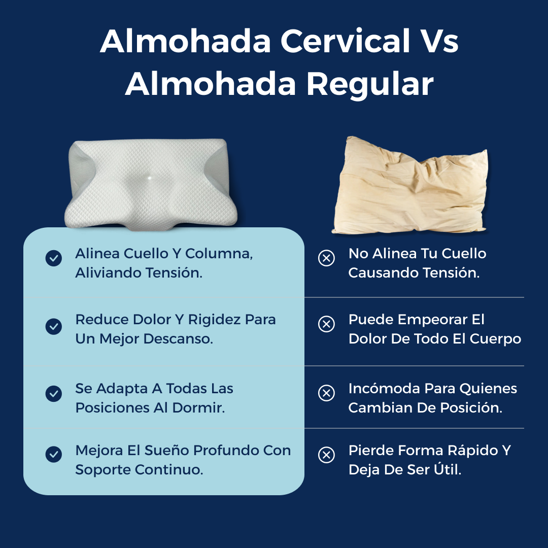 Descansa sin dolor. La almohada ergonómica que alivia molestias y mejora tu descanso cada noche.