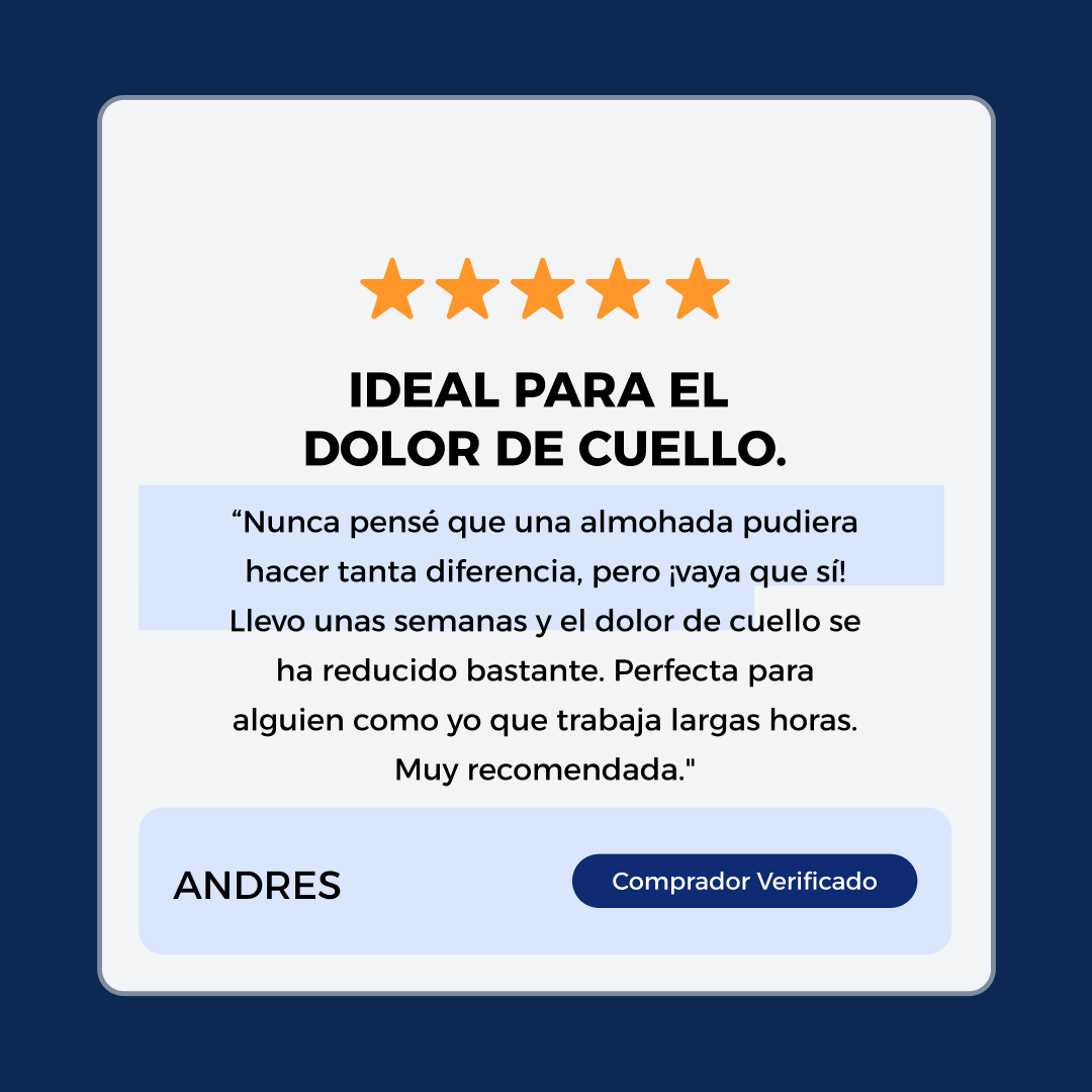 "Desde que uso esta almohada, me despierto sin dolor de cuello ni hombros. ¡Por fin descanso de verdad cada noche!"